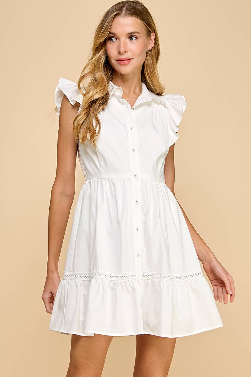 Fit and Flare Button Up Ruffled Sleeves Dress
