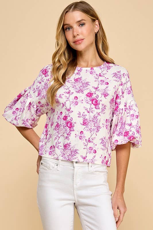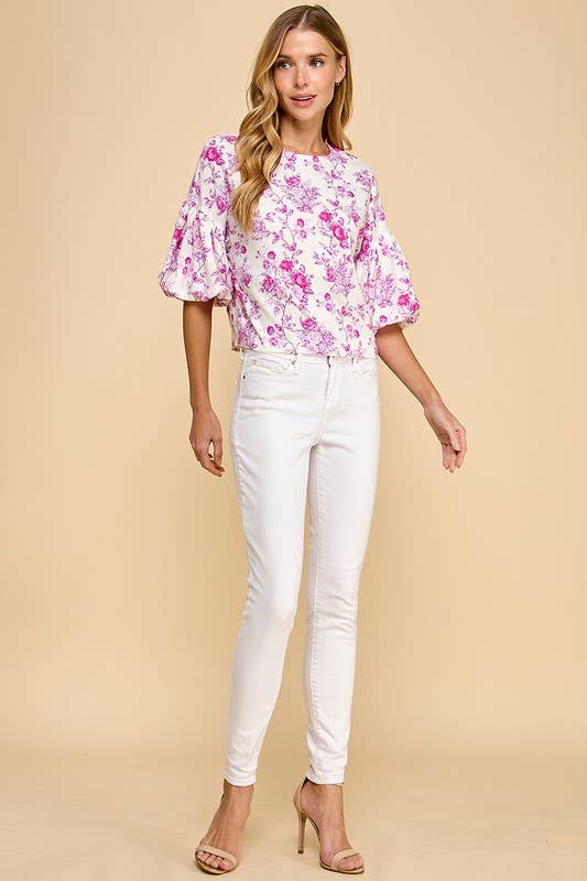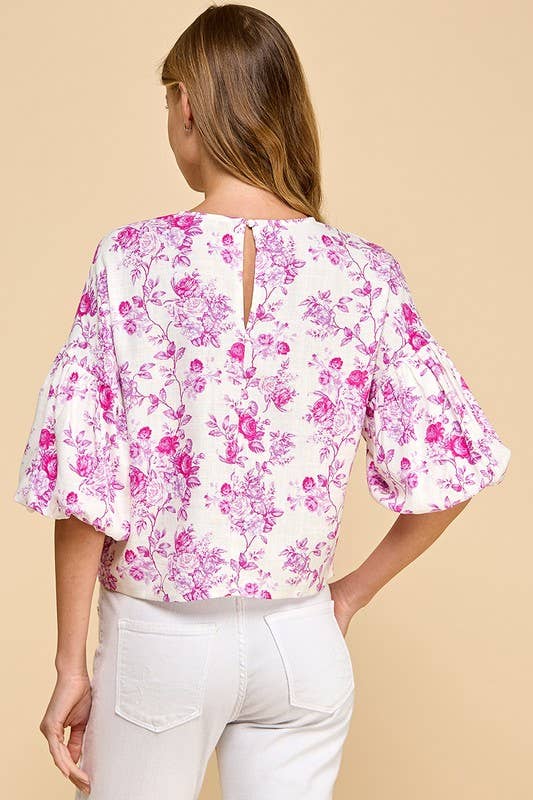 Floral Print Puffed Sleeves Boxy Top