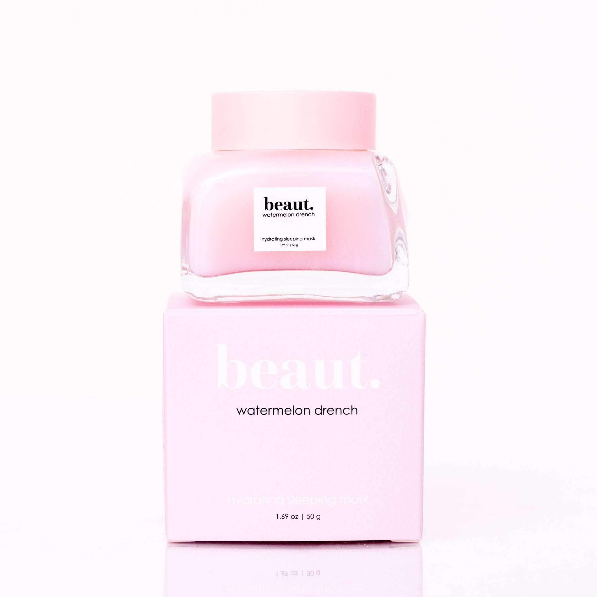 The Watermelon Drench sleeping mask is enriched with watermelon extracts, hyaluronic acid, and Alpha Hydroxy Acids (AHAs), this mask redefines skincare innovation. Its bouncy, breathable texture harnesses watermelon's amino acids and vitamins to deeply hydrate, soothe, and shield your skin against dryness and pollution. This overnight mask optimizes skin renewal for a visibly revitalized, refined, and naturally glowing complexion. Perfect for overnight, or any time your skin is in need of extra hydration. Instructions: Use daily or as needed. For sleep, apply a generous layer on your skin as the final step of evening routine for perfect, dewy, glowing skin. For daytime, apply a generous layer as the final step of your morning skincare routine for a glowy, post hydrafacial look.